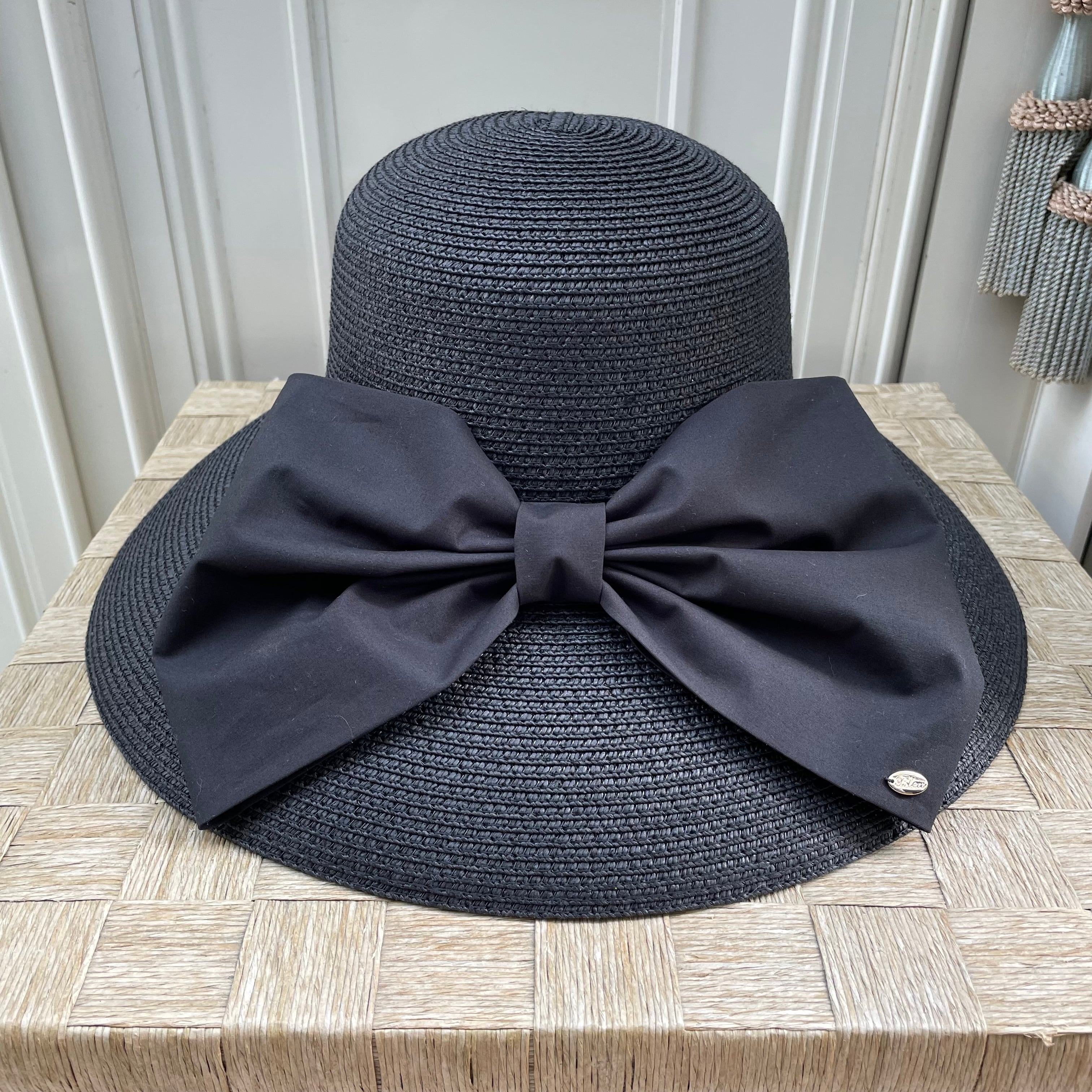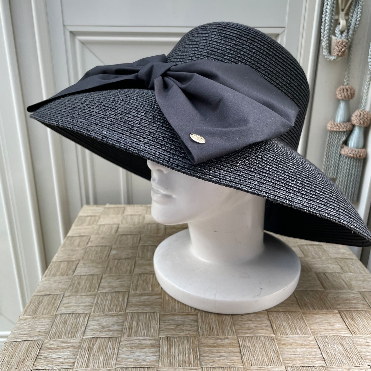 ツバの広いストローハットに大きなおリボンを付けた素敵な麦わら帽子です。
