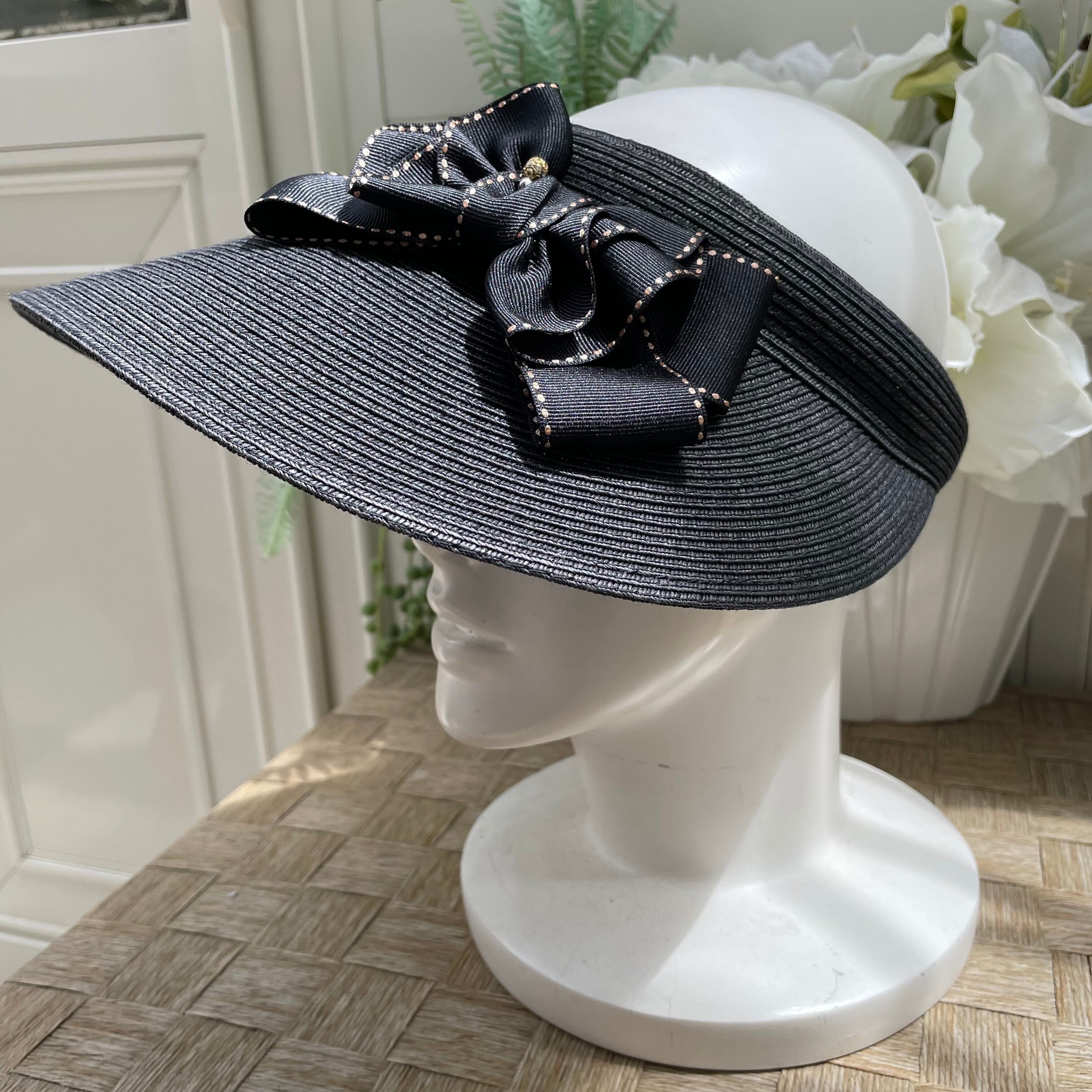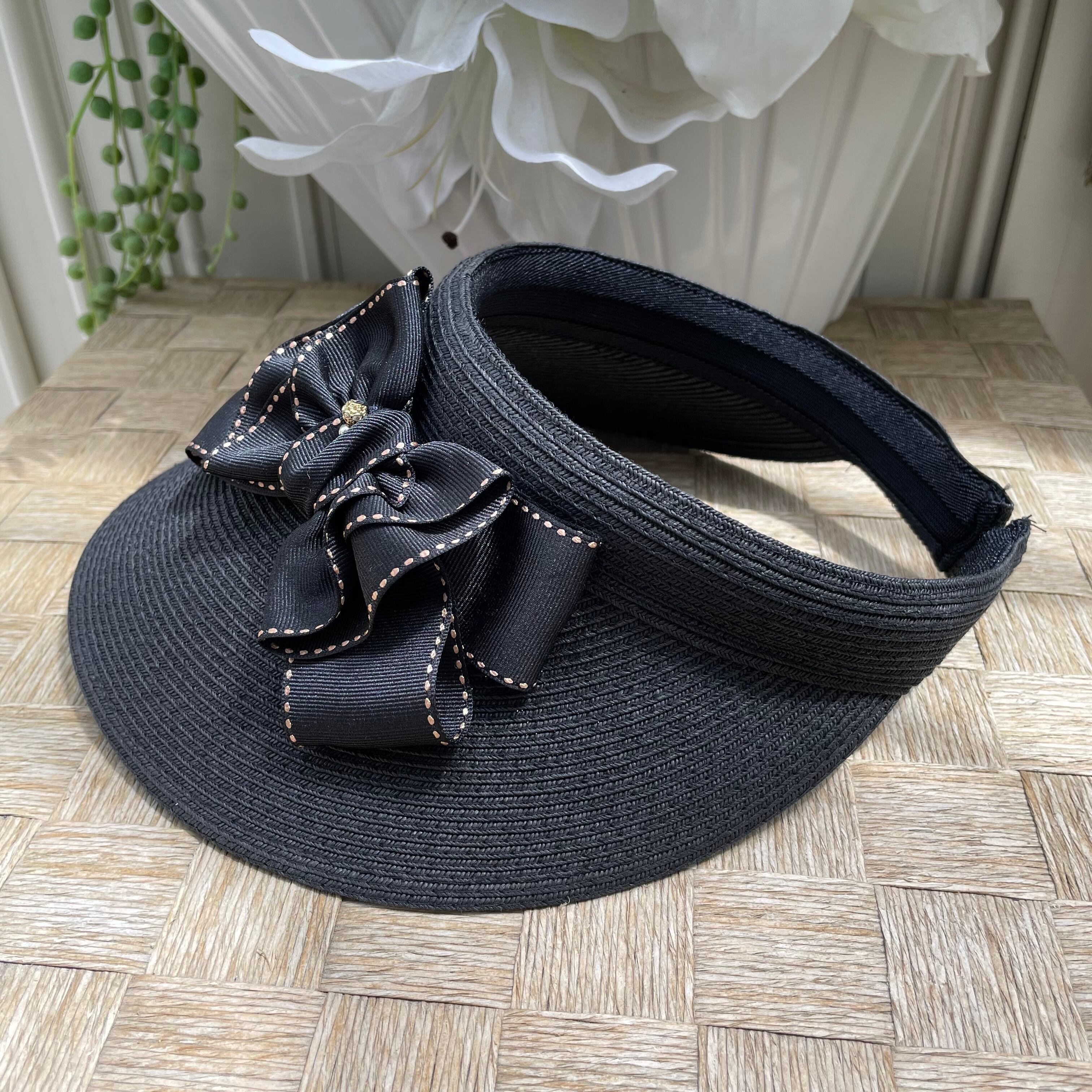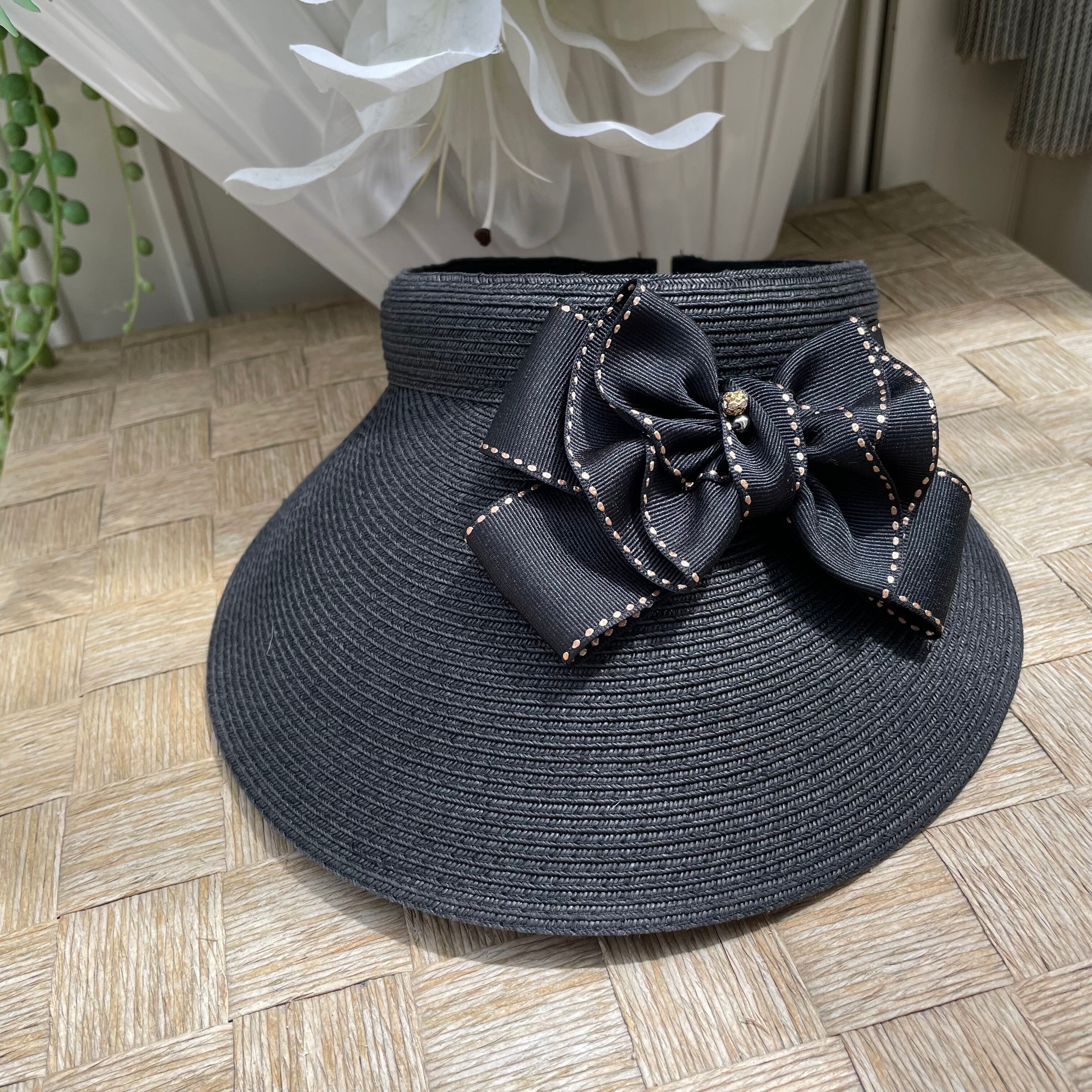 これからの紫外線対策に必須の差込型サンバイザーに希少ゴールドステッチのおリボンとキラキラボールをハンドメイドでつけた可愛いお品です。